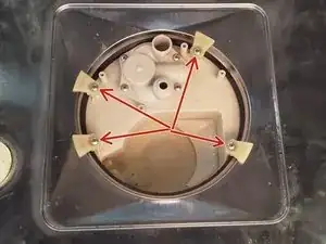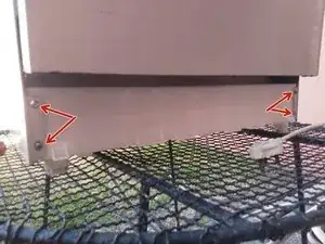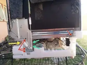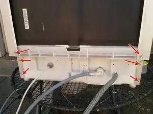 Открутите отмеченные винты и сдвиньте верхнюю часть машины к задней стенке, очистите и отложите в сторону.