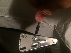 Используйте отвертку JIS #1, чтобы удалить оба болта длиной 25 мм, которые крепят дверь к холодильнику.