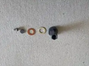 Установите пластиковую шайбу на вал, затем положите металлическую шайбу поверх пластиковой шайбы.