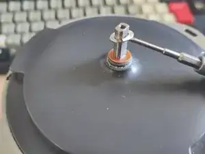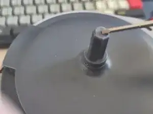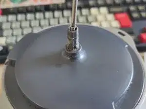 Снимите маленькую крышку, закрывающую винт, удерживающий соединитель на валу, используя маленькую плоскую отвертку.