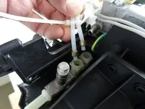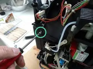 Бойлер и клапан закреплены тремя винтами. Также ослабьте некоторые кабели и трубки, чтобы бойлер можно было вынуть.