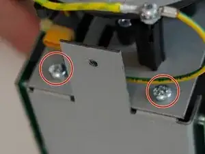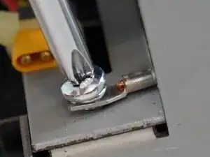 Используйте отвёртку PH2, чтобы снять два силовых лопаточных контакта (spade terminals).