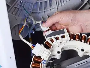 Вытащите статор из его слота на барабане и переверните его так, чтобы его задняя часть смотрела вверх.