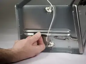 Отстегните чёрные витые пружины с задней части тостера с обеих сторон устройства.