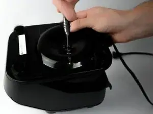 Удалите шесть винтов (длиной 12 мм, диаметром головки 6 мм) в нижней части блендера с помощью отвертки Phillips #2.