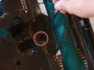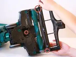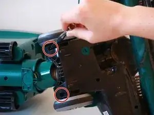 Используя бита PH0, отвинтите один винт длиной 13,4 мм между роликовой щёткой и местом крепления защёлки.