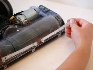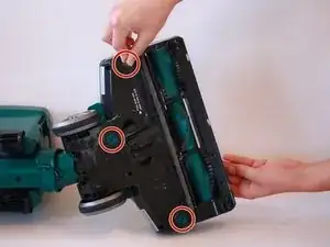 Используя отвёртку T20, отвинтите три винта длиной 13,4 мм в местах, где крышка роликовой щётки крепится к дну пылесоса.