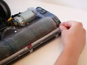 Используя отвёртку T20, отвинтите один винт длиной 13,4 мм позади ременного конца роликовой щётки.