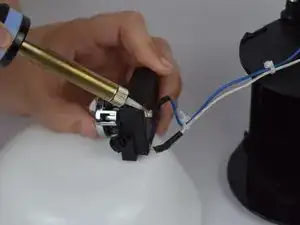 Припаяйте два провода, фиксирующие синий и белый провод в чёрном корпусе таймера.