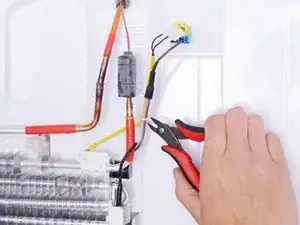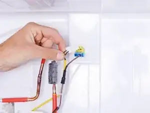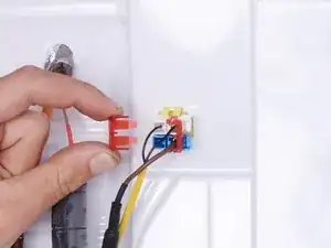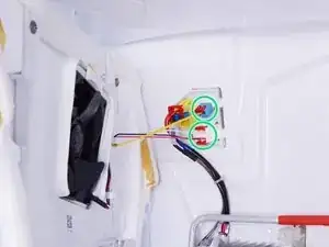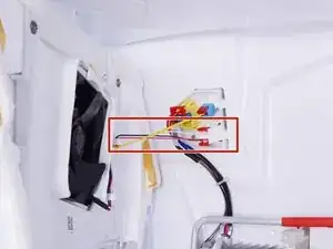 Сожмите и отсоедините два проводных разъёма, соединяющие крышку испарителя с холодильником.