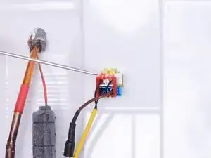 Используйте кусачки или ножницы, чтобы перерезать хомуты, фиксирующие жёлтый кабель термистора.