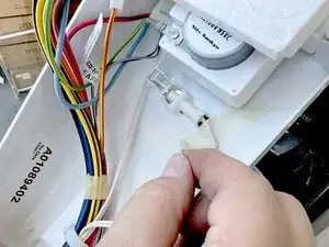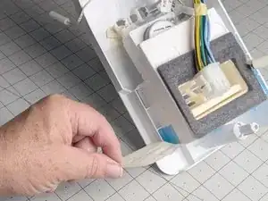 Найдите термистор отделения для свежих продуктов и снимите ленту, чтобы освободить проводку.