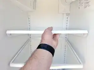 Поднимите передний край полки, чтобы освободить ее от опорной скобы.