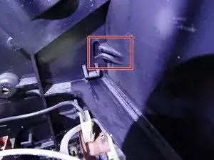 На верхней части боковой панели свободно лежит металлическая пластина, удерживающая датчик вращения на месте. Обратите внимание на положение пластины. Просто поднимите пластину вверх.