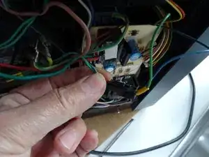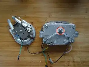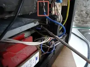 Два кабеля идут к плоскому разъёму на насосе. Отключите оба кабеля.