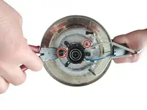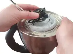 Используйте отвертку Phillips #0, чтобы удалить три винта длиной 19 мм на дне электрического чайника.