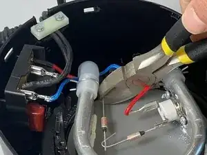 Перережьте каждую клемму термовыключателя у места его соединения с креплением кусачками.