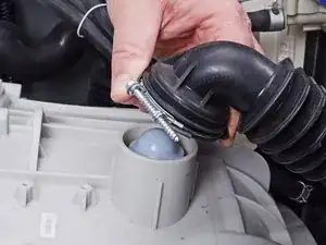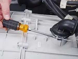 Используйте крестовую отвертку, чтобы ослабить винт, фиксирующий вентиляционный шланг.
