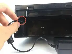 Нажмите на две черные пластиковые вкладки, чтобы снять заднюю крышку зарядной базы.