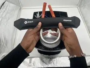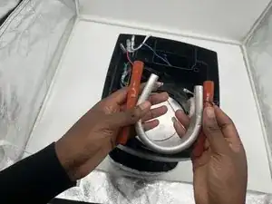 После разогрева iOpener оберните его вокруг концов оранжевых трубок, чтобы помочь ослабить клейкий материал.