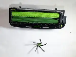 Уложите ваш Roomba вверх дном, чтобы модуль щетки был обращен к вам.