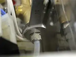 Отвернуть насадку для вспенивания молока. Для этого можно использовать разводной ключ.