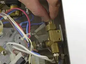 Открутить гайку, прикрепляющую клапан к группе заваривания. Если она прикипела, обработайте уксусным раствором и оставьте для воздействия.