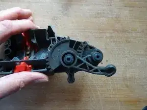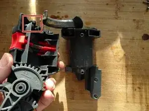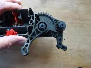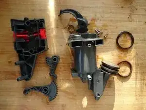 Обратите внимание на положение двух рычагов с зубцами в нижней части и положение поршня для дальнейшей сборки. Затем снимите их.