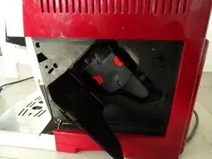 Обратите внимание на маленький черный резиновый буфер с пятиугольным профилем. Это ограничитель для контейнера для гущи. Он часто выпадает. Замените его между двумя половинами корпуса при сборке.