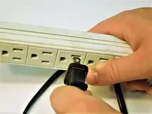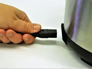 Удерживайте разъем шнура питания крепко указательным пальцем и большим пальцем.