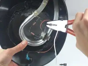 Осторожно приподнимите серебристую опорную скобу, освобождая нагревательную пластину от нагревательной спирали.