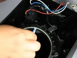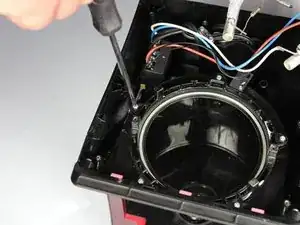 Найдите пять винтов длиной 11,5 мм, крепящих пластмассовое кольцо к корпусу кофеварки.