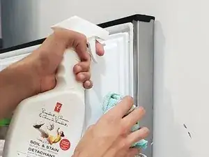 Очистите и высушите поверхность универсальным очистителем и кухонной тряпкой или салфеткой, чтобы новый уплотнитель холодильника правильно приклеился.