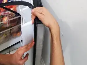 Возьмите новый уплотнитель холодильника и поместите его вдоль внутреннего края двери.