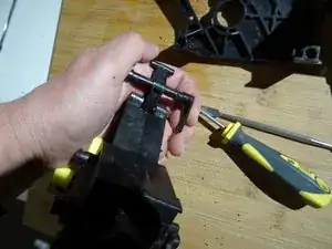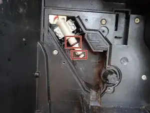 Нижний поршень можно вытолкнуть из блока заваривания, предварительно выведя рычаг отклонения из посадочного места с помощью отвёртки.