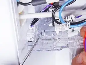 Повторите для остальных пластиковых защёлок, чтобы полностью отделить узел диспенсера от шасси.