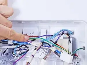 Тяните прямо вниз, чтобы отделить плату управления настолько, чтобы получить доступ к её разъёмам.