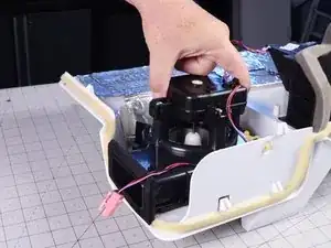 Поднимите вентилятор ледогенератора из крышки испарителя и извлеките его.