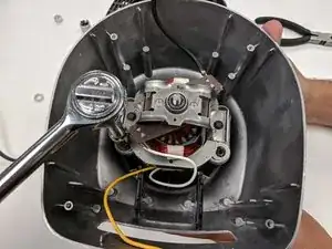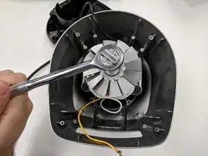 Удалите винт сверху вентилятора с помощью промежуточного ключа 4 мм.
