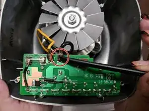Используйте лопатку, чтобы отсоединить черный провод от платы.