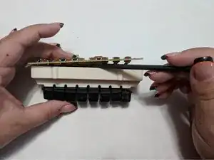 Используйте металлическую лопатку, чтобы отсоединить плату от кнопок.