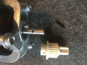 Используя керн и молоток, выбейте палец. (Примечание: поддерживайте шестерню с противоположной стороны, чтобы защитить вал мотора от повреждений).