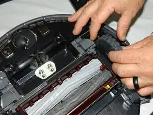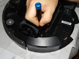 Начните с того, что переверните Roomba на спину и поместите его на ровную поверхность.