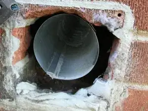 Следующий шаг — это найти вентиляционное отверстие сушилки, которое должно быть снаружи дома. Вам нужно будет отсоединить вентиляционное отверстие, открутив четыре винта, которые его удерживают. Затем утилизируйте старый шланг/трубку сушилки.
