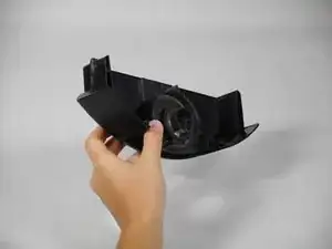 Сохраните пружину и крышку кнопки. Остальная часть сборки вентилятора (жёлтый мотор и черный корпус) должна быть заменена как единое целое.