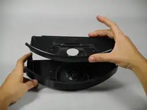 Снимите корпус с вентилятора и батарейного модуля, потянув его прямо вверх.