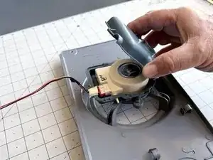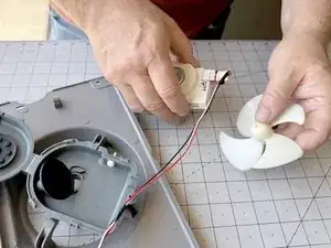 Отщелкните провода термистора и провода вентилятора испарителя от сборки вентилятора испарителя.