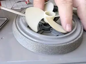 Они удерживаются на месте только за счет трения и легко снимаются. Пытайтесь поддеть как можно ближе к валу вентилятора; избегайте поддевания лопаток вентилятора.
