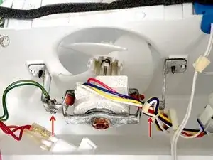 Снимите провода вентилятора с удерживающего зажима на корпусе вентилятора.