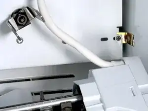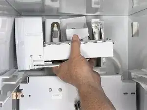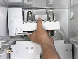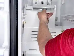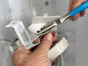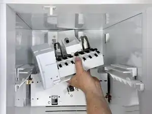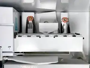 Используйте головку на 1/4" чтобы ослабить или удалить два винта, фиксирующие льдогенератор на месте.